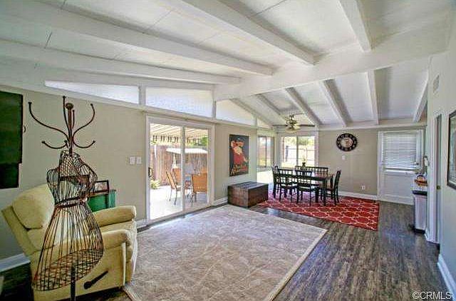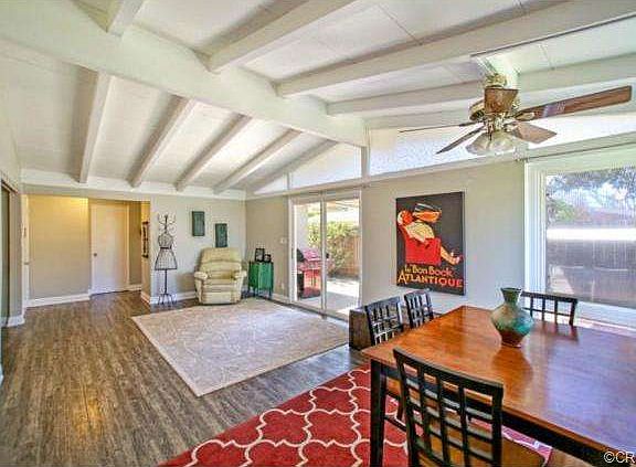 This stylish single level mid-century modern home has been recently remodeled and brings Restoration Hardware flair to Fullerton! New designer paint (inside and out) combines with grey washed hardwood flooring throughout, vaulted wood beam ceilings, open floor plan plus remodeled kitchen and bathrooms to complete the ultimate "turn-key" opportunity for those seeking style, abundant natural light and comfortable living spaces. The gourmet kitchen remodel included new cabinets, stainless appliances, butcher block counter top and custom lighting. The fully fenced, private 7400 sf lot is enormous and has new sod in the front and backyards. An electric awning converts the side patio to the ultimate indoor/outdoor living area. The 4th bedroom is currently being used as a family room but could easily be converted back. Other features include central air conditioning, new lighting/plumbing fixtures and an over sized 2 car garage with full driveway. Located in a great neighborhood within the Sunny Hills High School boundaries and close to downtown, shopping, restaurants, school and easy freeway access. The home does not back to any busy streets and No Mello Roos or HOA! This warm, immaculate and comfortable home is waiting for the next lucky owners!