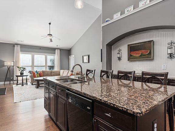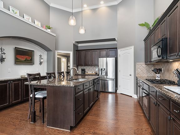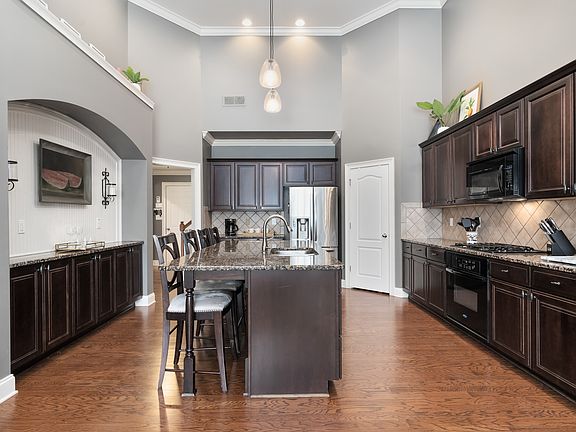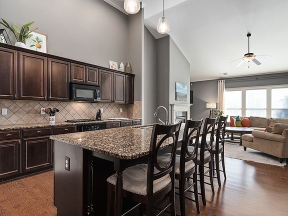 - Kitchen Features: Breakfast Bar, Cabinets Stain, View to Family Room, Stone Counters, Kitchen Island, Breakfast Room