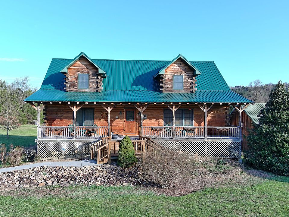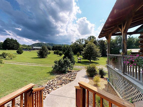 Dreams do come true! Incredible cabin in the foothills of east Tennessee with beautiful mountain views on 6.83 acres. The multi-purpose shop, open 3-bay shed, and 100+/- blueberry bushes is just icing on the cake. Main level features great room with vaulted ceiling and stone gas log fireplace, gourmet island kitchen with a FiveStar dual fuel double oven stove, master suite with 2 closets and jetted tub, laundry area, full bath, full covered front porch and patio doors opening to 12x12 elevated back deck. Second level features huge loft area, two large bedrooms and full bath. Solidly constructed with 12'' block and web truss floor system. Full unfinished basement with workbench and cabinets, 2 car drive under with a 9' and 10' wide doors, walkout door, toilet, and utility sink. Some of the special qualities include knotty pine tongue and groove interior walls and ceilings, Z brace knotty pine doors, 6'' exposed ceiling beams, 11'' wide plank wood flooring on main level, Carrier geothermal heat pump, 80-gallon hot water heater, composite decking and new metal roof on home in October 2022. The 1200 sq. ft. thermostat controlled heated and cooled shop is insulated and can be used for just about anything. Shop is board and batten with entry area, counter and sink, half bath with utility sink, 200-amp service, 40x8 and19x8 attached sheds, covered porch area, concrete floor and garage door. Huge 44x26 open shed is board and batten sided with 2x6 self-supporting roof truss system and insulated metal roof. Parklike 6.83 acres is mostly cleared and features many ornamental trees and shrubs with approximately 100 blueberry bushes, asparagus bed and private picnic area along the stream. Boundary lines are wooded and provide privacy. The eastern side of the property boarders Flag Branch stream. Pictures are a mixture of before and after new roof installed. Property consists of 4 lots totaling 6.83 acres. Buyer and/or Buyer's agent to verify all information.