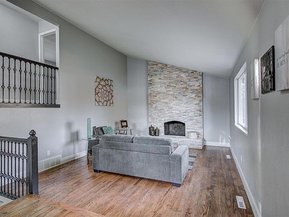 Beautifully remodeled home in Centaur Village. From the front entry you are greeted by warm and welcoming wood floors, wrought iron railing and vaulted ceilings. Floor to ceiling stone fireplace front. Newly refinished and new wood flooring, on the main level. Kitchen has new cabinets, SS appliances, granite countertops. Roof and windows are new, new doors throughout the interior. Freshly painted inside and out, new carpet on upper and lower levels. Bathrooms are newly tiled and with new fixtures. Master bedroom has a private double vanity off the shared bath. Must see to appreciate the workmanship in this home! Quiet street with mature landscaping.
