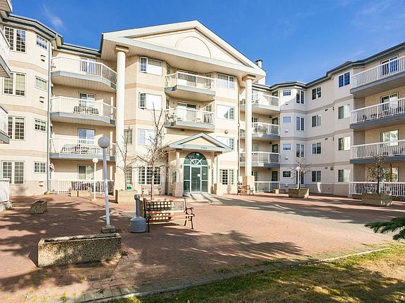 This bright & cheery END UNIT 55+ condo is perfectly situated to capture the morning and afternoon sun with it's wrap around windows. This location provides easy access from your GATED DECK, directly into the relaxing courtyard, ideal for visits from friends and family! Inside offers IN-FLOOR HEATING, newer plush carpet, GAS F/P + an updated kitchen with GRANITE COUNTERTOPS, eat up island, RECESSED POT LIGHTING & UNDERCABINET LIGHTING! This open concept is spacious yet inviting with a WIDE HALLWAY & closets, 2 bdrms incl. the spacious primary suite with a walk-thru closet into the large 3 pc ensuite. There is an add'l 4 pc guest bathroom, a spacious laundry/pantry room off the kitchen plus a separately TITLED HEATED UNDERGROUND PARKING STALL & storage close to stairs/elevator. MANY UPGRADES incl. removal of stipple ceiling texture, lighting, A/C UNIT, flooring, granite tops & paint. Secure bldg with cameras. Shows a 10/10!