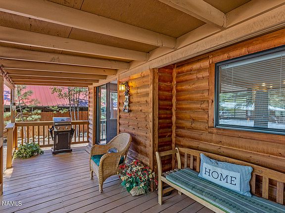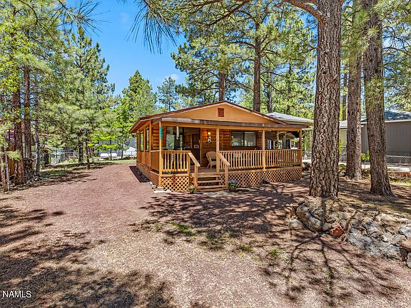 Introducing a charming and cozy single-wide home with an addition. This delightful, furnished home boasts a warm and inviting log-sided front that exudes charm and character. A wood burning stove is the focal point of an open floor plan that maximizes space. Perfect layout for entertaining. Tongue and Groove trim throughout the home add a rustic touch. The covered deck is the ideal spot to enjoy our cool summer weather while taking in the beautiful surroundings. Situated on a very nice lot this property offers ample parking for you and your guests. Access to the forest is a five minute walk! Enjoy the beauty of nature while enjoying the comfort and coziness of this home. This home truly is the perfect retreat!