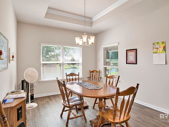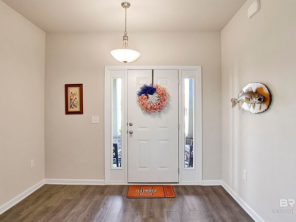 Lake Front home located in Wellborn Lake Estates off CR 12. Just 20 minutes north of Gulf Shores. Gold Fortified home in established neighborhood. Brick and vinyl exterior with 11x17 sunroom. Granite counters throughout, vinyl plank floors in main areas, tray ceilings. Kitchen has breakfast bar, stainless appliances to include refrigerator. White cabinets and dining room overlooking the lake. Primary bedroom faces the lake and has double vanities in bathroom, garden tub/shower and large walk-in closet. Split floor plan with spacious laundry and double garage. Home is generator ready and has sprinkler system. Termite contract with Waynes and seller will negotiate washer and dryer. Sunroom has loads of light and separate cooling unit. Fantastic home! Buyer to verify all information during due diligence.
