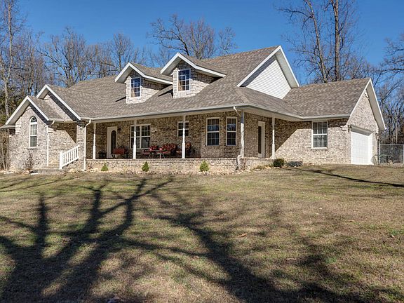Long private drive leads to this picture perfect home on 5 acres with 30x40 shop. Covered front porch plus a covered patio provides extra outdoor living to this brick home. Enjoy the nature & wildlife. Home has 10 ft & 11 ft ceilings, 3 bedrooms, 2.5 bathrooms, formal dining & eat in kitchen with breakfast bar. Kitchen has 2 full pantry cabinets & extra counter space. Land is part open & part wooded. Yard is fenced & has a storm shelter. Easy access to Springfield & Joplin.