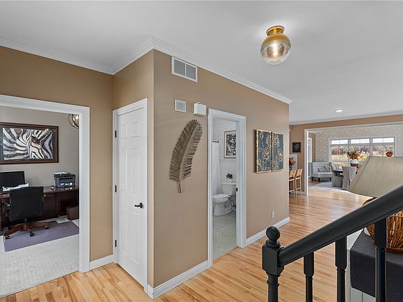 Beautifully updated home with breathtaking views of rolling prairie! You will fall in love the minute you walk in the front door of this 1-1/2 story 5 Bedroom, 4-1/2 Bath home in Stoneridge Sub. You'll love the open concept Kitchen, Dining/Sun Room and Living Room. Main floor Master has direct access to Pool deck. Master Bath has been remodeled and includes a Marble Walk In Shower. There is one other Main Floor Bedroom (attached Full Bath) that could also be used as an Office. Upstairs features two large Bedrooms, a Full Bath, and a Bonus Room in between that could be a TV room. The lower level features a huge Family Room, a good sized Bedroom with egress window, and another Full Bathroom. Outside you can relax in your 18' long Screened In Porch, or on your brand new 32'x18' composite deck overlooking a 16' x 37' saltwater Fiberglass Pool with pool seats on both sides. The is also a Pool House with a half bath and a Refrigerator. 3 Car Garage and 3rd bay is heated and a/c!