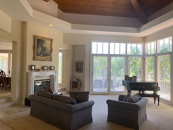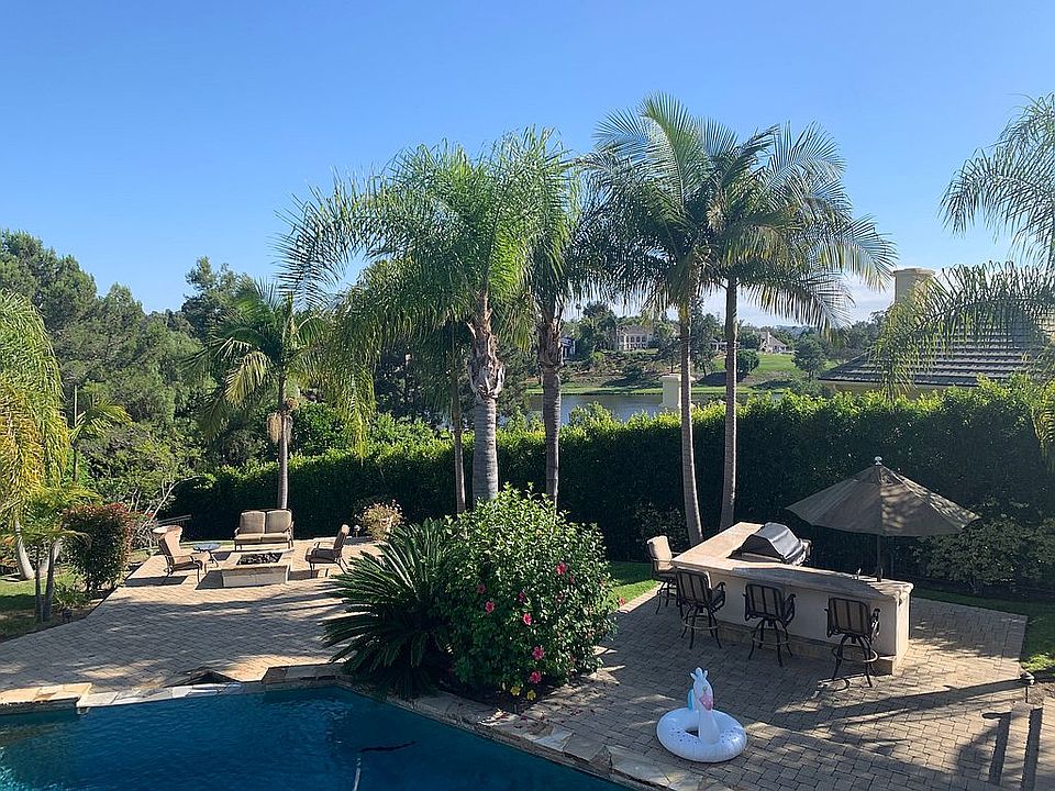 Living at its best! Six bedroom, 7.5 bath, lake view home on the north side of gate guarded Fairbanks Ranch. Resort style backyard with large pool/spa, outdoor kitchen with Lynx barbecue, sound system, and fire pit. Walk out the back gate and you're at the lake, tennis courts, walking trails, and clubhouse. This home is open and bright with natural light filling every room. The floor plan includes two master bedrooms, one on each level, which makes it perfect for multi-generational living or for working from home. Two additional bedrooms are on each level. The master bedroom on the entry level features two large walk-in closets. Entry level, living, dining, and family rooms have views of the surrounding trees and lake. Each level has a large family room. The home includes a dry sauna and large 3-car garage. Recent upgrades include new sink faucets in kitchen and bathrooms, new tub and shower trim sets, new shower doors, refinished stone floors and stone in shower/tubs, Hydrawise WiFi irrigation controllers, and high efficiency sprinkler heads. Buyers' agents welcome.