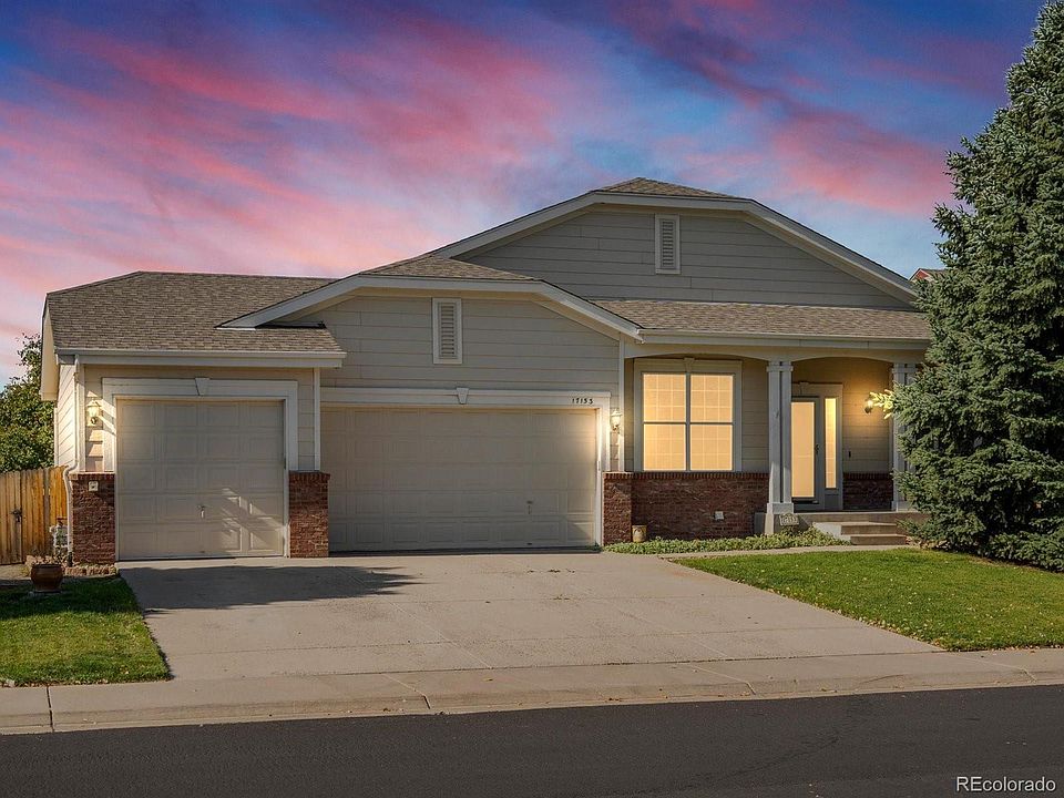 Welcome to this beautiful ranch home in the highly sought-after Challenger Park neighborhood! This spacious home offers 3 main-level bedrooms, a study, and a finished basement with 2 additional bedrooms, each with its own ensuite bathroom. The basement also features a powder bathroom, wet bar, entertainment area, and plenty of storage. The open-concept kitchen, complete with granite countertops, a walk-in pantry, and all appliances, flows seamlessly into the family room—perfect for gatherings. With a 3-car garage and a private backyard backing to a church parking lot, this home offers both space and privacy. Conveniently located near shops, restaurants, trails, parks, E-470, and top-rated schools, this is Parker living at its best! Don't miss this opportunity!