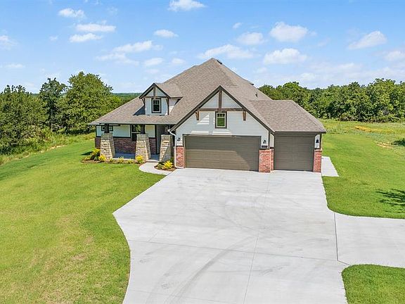 *Price reduced by more than $6,000* This magnificent home features exquisite top-of-the-line finishes. Featuring a charming mountain cottage style, this one-acre property offers an idyllic retreat. The heart of the home lies in the centrally located kitchen and living room, providing a beautiful space for both relaxation and entertainment. The kitchen showcases stunning quartz countertops and built-in appliances. Elegant wood flooring adorns the living areas, complemented by a modern fireplace. Indulge in the luxurious spa-like primary bath. The second floor reveals a sprawling bonus room, perfect for various activities. Outside, you'll discover a grand covered front porch and a back patio. Additional highlights include a study, a powder bath conveniently located near the main living area, a spacious utility room complete with a mud bench, an oversized 3-car garage, and ample storage options throughout the home. Dow’s Hills is located between Pennsylvania and Western on SW 240th Street just west of the highly desired Washington Public Schools. This community is less than five minutes from I35 and only 35 minutes from downtown Oklahoma City. The one-acre homesites will feature rolling hills, ponds, and mature trees. Go ahead and build that storage building on your property, raise show animals, explore the land, and enjoy the perks of life in the country. Included features: * Two-year home warranty * 10-year structural warranty * Guaranteed heating and cooling usage on most Ideal homes * Partially landscaped front & backyard * Floorplan may differ slightly from the completed home.