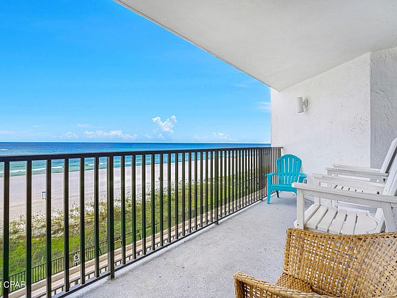 MOTIVATED SELLER! The BRIGHT Panama City Beach spotlight has stopped on this gorgeous and GULF FRONT- Privately GATED beach property. From the moment you enter, you are overwelled by gulf views from the kitchen, living room, and dining room. The oversized kitchen boasts endless wraparound granite countertops, white shaker cabinets, a custom backsplash, pantry + more. The master bedroom hosts an oversized en suite master bathroom w/ matching granite, shower/tub combo, + more. The deluxe size PRIVATE balcony is the perfect location to take in the world famous Panama City Beach sunrise and sunset. NEW HVAC INSTALLED! Enjoy the GULF FRONT Pool, Hot Tub/Jacuzzi, elevated sundeck + pool house. The entire complex is renovated and the assessment has been paid in FULL! A phenomenal rental history follows!