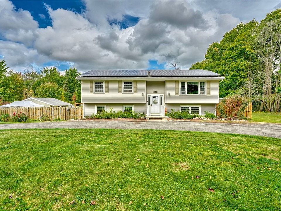 Spacious, beautifully maintained and updated home on 3.5 acres with flexible living options including possible in-law set up! Updates include: Remodeled kitchen with hickory cabinets, pull-outs and soft close doors * Updated baths on both levels * New windows & doors (5 yrs.) * New boiler (2 yrs) with vinyl baseboard covers * Whole house generator (1 yr) * New LVT flooring throughout first floor (completed prior to closing) * On demand hot water tank * Above ground pool (4 yrs) * Solar panels to keep electric bills low * Other highlights include zoned heating, huge family rm / sunroom with cathedral ceiling, skylight & door to large composite deck with patio below, detached garage with 2 workshop/storage rooms & door to chicken coop (garage has it’s own electric panel), walk-out lower level with family room featuring a built-in bar with tap, two additional bedrooms, full bath, laundry & 2nd kitchen. Amazing private and serene setting with fenced in play area, gardens, waterfall pond, dog pen & landscaped areas with woods in the rear. Too many features to list - additional notes in attachments – this is a must see! Delayed negotiations to Wed, 10/1 at 1pm.