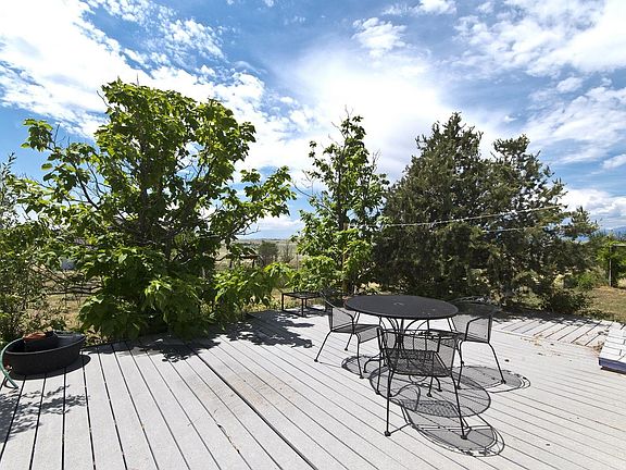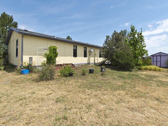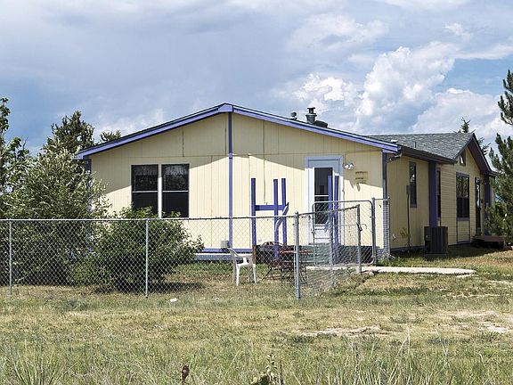Excellent opportunity to own 2.5 acres in quiet, peaceful Falcon neighborhood. Home is spacious at 1700+ square feet with 3 bedrooms and 2-1/2 bathrooms. Large family room space with built-in cabinets and shelving. Laminate floors throughout living areas with carpet in bedrooms. Spacious Master Suite with attached 5-piece bathroom. Corian countertops throughout the home. Appliances include stove, fridge, freezer, microwave and dishwasher. All window coverings included, as is the barn cat! In addition to home, property boasts large composite deck, fenced yard, dog run with dog house, 3 storage sheds, and large detached 24x30 garage/workshop with concrete floor, electrical and pot belly stove. Excellent views at this property AND it is zoned for horses!