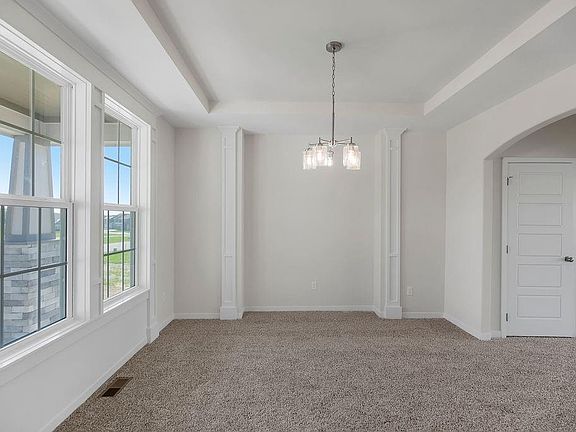 The Harlow V is a very popular 2-Story plan by Prieb Homes, Inc. Price adjusted on 6-26-25 and Move-In-Ready! 5 bedrooms and 4 baths with a 3-Car Garage backing to Greenspace! Front porch elevation with additional stone. The first floor includes a flex room/5th bedroom. The lovely 2 story vaulted entry and winding staircase leads to a large and open Great Room and Dining Room which includes a dry bar area. Kitchen is spacious and includes a large island, plenty of counter space, storage, and pantry. A Boot Box and Entry Closet are located in the Mudroom. Upstairs Laundry room can be accessed through hallway and Primary Bedroom Closet. The Primary bathroom features a large tiled shower with corner bench. Vaulted ceilings in all bedrooms, raised vanities in the Primary and Powder Bathroom. Irrigation system included and Covered Patio in the back yard. Stonebridge Pointe has 2 schools in the neighborhood, including a 2020 National Blue Ribbon Award winning elementary school and 5 year old middle school. We are right next to 1236 Acre Heritage Park and 6 Acre Arbor Landing Park. Community amenities include 4 Pools, 2 Clubhouses (1 is a gym!), Playgrounds, Trails, Pickleball Court and Sand Volleyball Court. Our "Mom's Council" and social committee are quite active. Taxes are estimated. Photos are of the actual home.