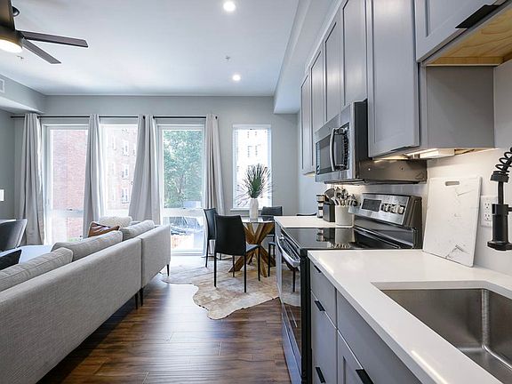 Enjoy a brand-new renovation with high-end designer finishes in this fully furnished 1-bedroom, 1-bath condo located on the 2nd floor of a Dupont Circle rowhouse. The unit features 11-foot ceilings with recessed lighting, impressive rear floor-to-ceiling windows allowing for great light, central air conditioning, and hardwood floors throughout. The spacious living room accommodates a desk area, dining area, and a large plush sofa that is deep enough for the occasional guest to sleep on. This condo boasts a fully equipped kitchen with quartz countertops and stainless steel appliances, including a dishwasher. The impressive custom tile shower and in-unit washer and dryer add convenience to your stay. Relax in the queen-size bed with a new high-quality mattress and enjoy entertainment on the web-enabled 48" HD SmartTV. Dupont Circle is a vibrant traffic circle, neighborhood, and historic district in Northwest Washington, D.C. The area is located at the intersection of Massachusetts Avenue NW, Connecticut Avenue NW, New Hampshire Avenue NW, P Street NW, and 19th Street NW. The neighborhood is approximately bounded by 15th Street NW to the east, 22nd Street NW to the west, M Street NW to the south, and Florida Avenue NW to the north, offering a rich blend of history and modernity.