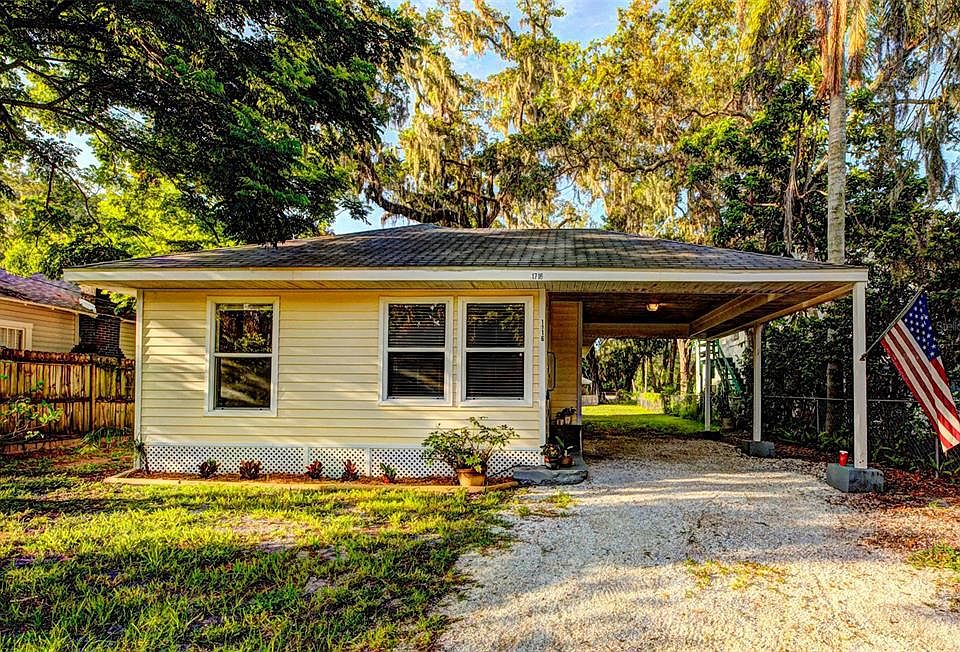 FANTASTIC RENTAL INVESTMENT OPPORTUNITY! This adorable previously renovated Florida Bungalow is waiting for that new owner! Featuring a spacious Living Room, a large open Eat-In Kitchen, and an Interior Utility Room that provides access to the rear yard and back patio. The home's front porch has now been enclosed and serves as a quaint and spacious entry foyer. The covered carport and extended driveway offer plenty of parking space. Most recent updates include a New Electrical Service Change (2023), Brand New laminate flooring (2023), and a beautifully freshly painted interior. A large storage shed sits to the rear large fenced-in backyard providing space for lawn equipment or additional storage. NO DEED Restrictions, NO HOA and plenty of space to park a boat or RV. Located a short distance from Historical Downtown Bradenton and Riverwalk, Mineral Springs Park, and Manatee Memorial Hospital. Just minutes from Bradenton's Spectacular Gulf Beaches, popular shopping, and amazing restaurants. Schedule your private showing today!