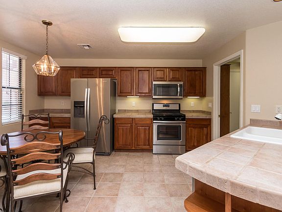 - Interior Features: Eat-in Kitchen, Fireplace-Gas, Live on One Level, Master On Main, Smoke Detector(s), Walk-In Closet(s), Wash/Dry Connection, Formal Dining Area, Security System, Counters-Tile, Sound Wired, Counters-Solid Srfc, Garage Door Opener(s)