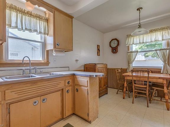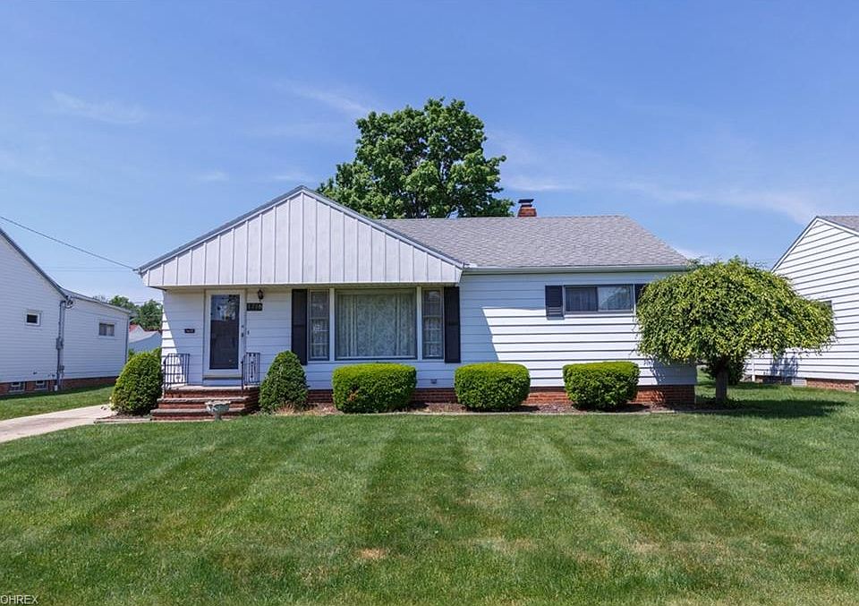 Wonderfully maintained Mayfield Heights home with 3 bedrooms, a full bath on the first floor, porch, two car detached garage and a full unfinished basement with a stand up shower. The foyer with coat closet welcomes you into a large living room! Step through the dining area into the eat in kitchen with all appliances. 3 bedrooms with hardwood floors and two of the bedrooms with ceiling fans. Updated flooring in first floor bathroom! Full unfinished basement with workshop area, laundry room and an 100 amp electrical panel. Super backyard with a 16 x 10 covered patio is great for relaxing or entertaining! Home has been taken care of and needs updating to bring it back to its full potential! One year home warranty provide by sellers and all appliances included. Home will be Violation Free prior to title transfer however home to be sold in its as is present physical condition, seller will not make any repairs and or replacements to the property. Convenient location and close to shopping and Route 271!