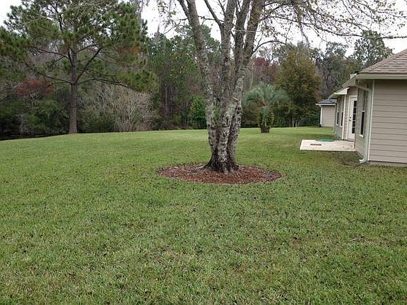 Lovely and bright 3 bed 2 bath single family home in exclusive Pace Island. Very large wedge shaped lot on large pond facing nature preserve, located at the end of a large cul-de-sac. Room to expand or just enjoy your wonderful 13,000 sq ft+ lot. House is 1508 sq ft of heated area, double car garage, laundry room, split bedroom plan, breakfast nook off kitchen, eat in bar, separate dining, Many closets. Master bathroom has walk in shower, large vanity, separate toilet room, relaxing garden tub, and large walk in closet. Gas appliances. New hardy board, a/c, furnace, and water heater. Newly painted inside and out. New roof in 2013. Best lot in the area! Community amenities include two pools, dock, nature trails, water trails leading to Doctors Lake, basketball courts, baseball diamond, soccer field, many nature preserve areas, gated community. Easy to show. House currently has no flooring in bedrooms, living, and dining room. Seller will install carpet, buyer's choice of color, or give credit. Contact Owner directly: Douglas Wilford 904-608-5678 Agents welcome with well qualified buyers.