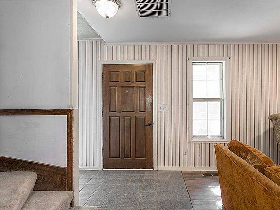Tap the brakes! Keep an eye out for deer and stop to look at this AS-IS spacious house with mature trees and plenty of storage. Wallpaper and upstairs carpet need updating along with other areas. Large living room with a gas/wood fireplace and bookcases. Walk in pantry next to the kitchen on one end and breakfast area with on other. Laundry room includes gas or electric hookup for dryer. 3 bedrooms, 1 bath upstairs, 1 bedroom and bath downstairs. Closets galore with 2 bedrooms having walk ins. Back yard well shaded with water feature (liner has a hole), a garden plot and raised berm Iris Garden. Indoor cats in home.