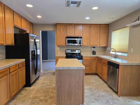 Well-maintained 4 bedroom, 3 full bathroom, 2216 sq ft two-story house built in 2004. One bedroom and one full bathroom on first floor. Double pane windows, recessed lighting, mirrored closets, carpeting, and laminate flooring throughout. Primary bedroom features dressing room, soaking tub, separate shower & toilet room, dual sinks, and additional closet. Formal dining room, plus less formal dining area in kitchen. Separate living room with surround sound, fireplace, and slider to enclosed backyard with deck. Kitchen features pantry, island, and all stainless steel appliances: refrigerator, dishwasher, oven, microwave. Laundry room includes washer and dryer. Landscaping also included. Storage under stairs. Central heating and air conditioning. 2-car garage. ADT Security System. Fairfield-Suisun School district. 3.7 miles to Travis Air Force Base. 2.4 miles to Air Base Parkway. Please do not disturb occupants. Rental info/application: About us: DRE #01085687 Schedule a showing:
