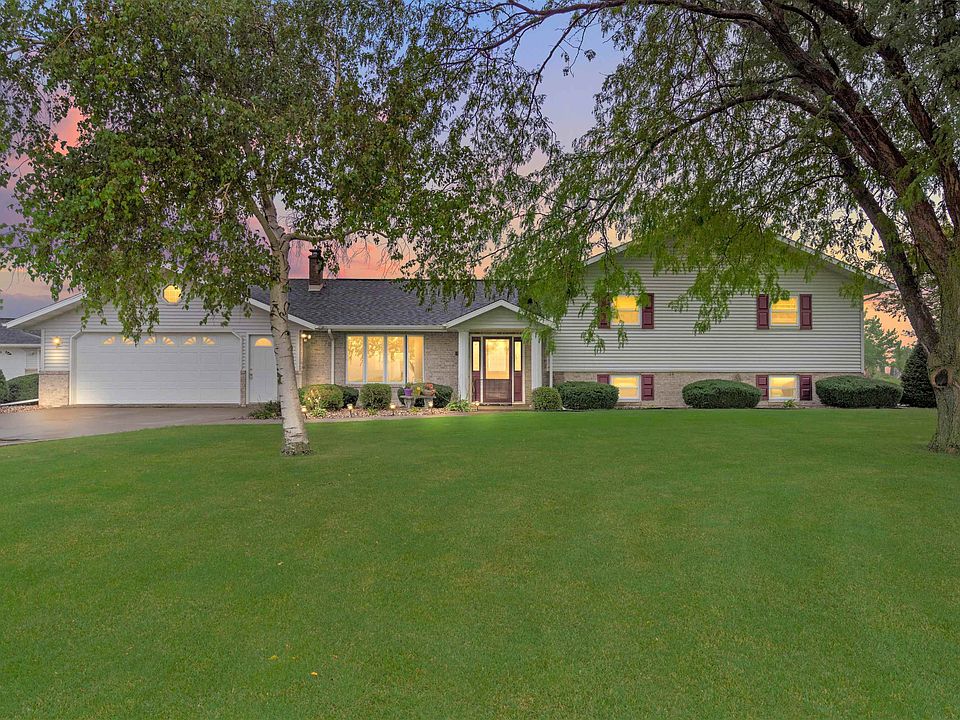 Discover charm and modern elegance in this 3BR+ 4th non-conforming BR., 3 bath brick and vinyl gem with 2800 sq ft of living space. Nestled in a serene country setting, this home offers highway exposure for easy access and ultimate tranquility. No zoning allows you flexibility and the perc of highway exposure. Inside, a new kitchen with new appliances, granite counters and new flooring beckons culinary creativity, while the entire open floor plan enjoys the sunshine. Two gas fireplaces, one in the living room and one in the family room, create cozy focal points. The finished lower level boasts a family room with a wet bar and a bonus office/exercise room, perfect for work or play. Enjoy convenience with an over-sized, heated 2-car attached garage, and indulge your hobbies in a separate 41x24 heated shop/garage. Lots of storage. The manicured yard enhances curb appeal, creating an inviting escape. PRISTINE EVERYWHERE... IN AND OUT!