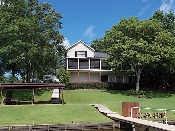 3 bedroom 2 bath home with nice log home interior in quiet cove; full length screen porch on lakeside main level; picnic shed with cement pad near waterfront; recently re-decked fixed and floating dock; full length walk-out basement with 2 garage doors; detached workshop; boat ramp; full length porch on lakeside lower level.