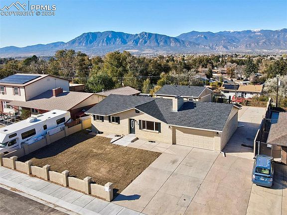 Welcome to this beautiful, all brick ranch home with incredible mountain views! Over 2400 square feet ranch home that is fully renovated throughout with beautiful Luxury Vinyl Plank flooring and new carpet. Newly installed recessed light fixtures in the living room, kitchen, sunroom, and basement. New fully updated Kitchen with beautiful countertops, stainless steel sink, solid wood cabinets, and GE stainless steel appliances. Newly painted inside and outside, with a brand new roof! Inside there are new 5-Panel Doors and new light fixtures in every room. Heat your home with the forced air furnace or utilize the two wood burning fireplaces on each level. Enjoy gorgeous mountain views of Cheyenne Mountain, Pikes Peak and the front range from your back patio. Best of all, the attached 2-car garage is large enough for your everyday driving, while the oversized detached 2-car garage in the backyard allows more than enough room for any hobbies or projects you have or want to start! You won't find a better deal on a beautifully renovated home in Colorado Springs! Don't miss this amazing opportunity, come see your new home today before it's gone!