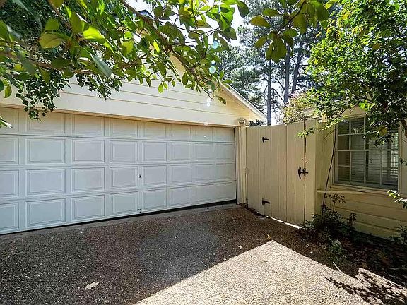 The living room features a fireplace and lots of built-ins. Master bathroom features marble countertop and spa-like atmosphere. Guest bathroom has pretty pedestal sink and classic black and white tile. Backyard is fully fenced. Parking pad and driveway offer plenty of off-street parking, and the detached, two car garage is great for storage. It features renovated bathrooms, a custom closet, and an attic for extra storage.