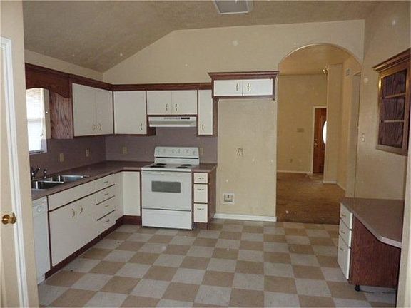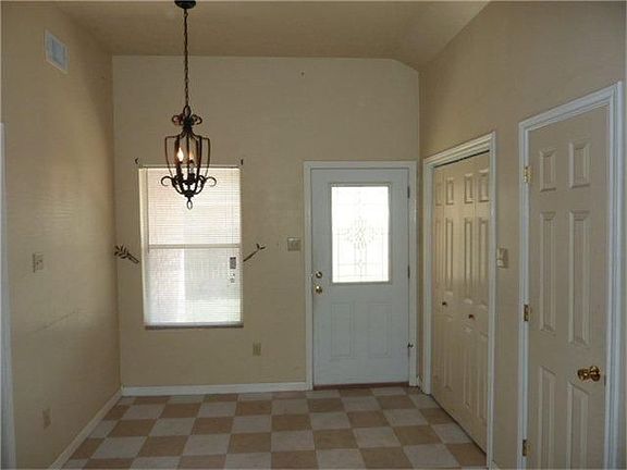 Cute 1 story home with lots of potential. 3 bedrooms, 2 bathrooms. Living area with bay window facing front yard. Open kitchen/dining combo with lots of cabinets and counter space and desk area for computer. Utility closet located in kitchen. Large master bedroom with high ceiling. Both bathrooms have tub with shower combined. Back yard with covered patio. Don't miss out!