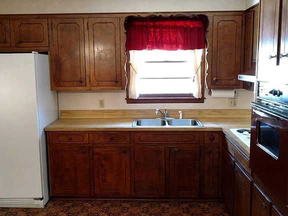 - Kitchen: Counter Tops-Formica, Cabinets-Stained