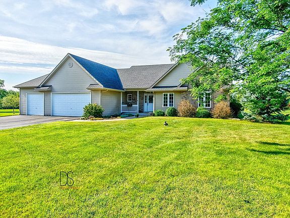 Southside 3-4 Bedroom home on 1.7 acres located Bluff Creek. Great floor plan with approximately3223 Square feet of finished living area including basement. Very open and spacious with great views out each window. Kitchen features new quartz countertop and backsplash in 2019. Nice functional island and microwave is a convection oven. Rear Three season Sunroom located off kitchen leads onto beautiful stamped patio and firepit area. Lower level finished with recreation room and family room. Exercise room could be converted to possible 4th bedroom. Great storage throughout. Living Room carpet 2019, lower level carpet 2019. Three season room converted 2015. Water system stays with house, R/o system is rented. High speed internet thru Mediacom available. Pool table stays, massage chair and lawn mower is negotiable. Great tax multiplier rate 7.56 for 2019. Grand Ridge School district. All measurements approximate. Seller willing to negotiate $1500 for re-sanding hardwood floors in kitchen area with acceptable offer.