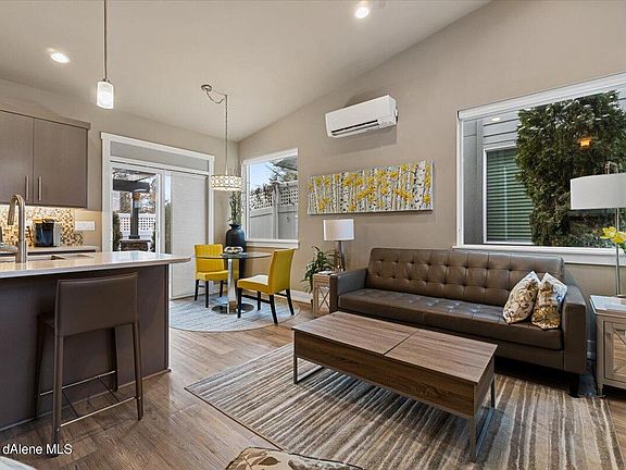 Immaculate turn-key home in downtown Coeur d'Alene! This fully upgraded 2 bed/2 bath home features LVP throughout, quartz countertops, stainless steel appliances, walk in pantry, fully tiled showers, 3 mini-splits, fireplace, accent walls, a loft office area, finished garage with heater and hot/cold water source, and an abundance of additional storage. Open concept design with plenty of natural light in a quiet neighborhood conveniently located within walking distance to Riverstone, Spokane River, Centennial Trail, Kootenai Health, restaurants, shopping and so much more! The energy efficient LEED & Energy Star certified home offers low energy bills, low maintenance and includes refrigerator, washer/dryer, televisions and office furniture. Don't miss out on an opportunity to enjoy downtown living in this wonderful home.