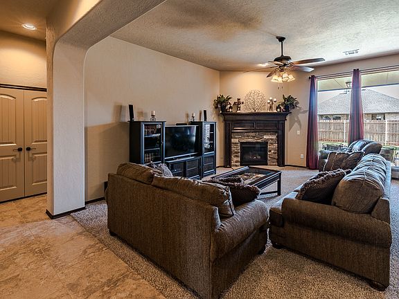 Why buy a new home down the street when you can buy this almost new home with thousands of dollars in upgrades? Blinds, storm shelter, premium fence, and extended patio are just a few of the upgrades that would cost thousands in a new build. This gorgeous home with open layout, 3 beds, 2 full baths, 3.5 car garage, plus study room! Tall picture windows in living room allowing plenty of natural light, beautiful kitchen featuring granite countertops, kitchen island, and lots of cabinet space. Landry room, outdoor storage building/shed, outdoor storm shelter and the perfect covered patio to entertain friends and family! Master bathroom is very spacious and offers double sink vanity, upgraded jetted tub, shower, walk-in closet and extra storage! You will love this home the minute you step in. A total beauty!