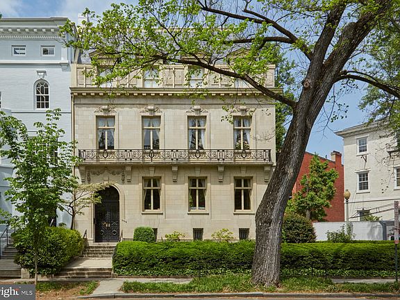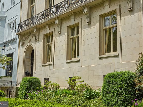 ALL OFFERS ARE DUE BY 2PM, WEDNESDAY, MAY 15. Showings by appointment only. Historic home in the heart of Dupont Circle. The home was constructed of stunning tan limestone in 1910, by noted Washington architect, Clark Waggaman, for the niece of President Van Buren. It is a superb example of the Louis XV style balanced skillfully with Louis XVI details. The principal chambers, the entrance vestibule, stair hall, drawing room, reception and dining rooms are all connected by glazed ~French~ doors. The same hardware, architraves, moldings, overdoors and elaborate cornice are consistent throughout. Grand entrance hall features a three-story staircase accented by the original wrought iron balustrade overlaid with gold leaf. Drawing room baseboards and Louis XVI mantle in Sienna marble. Dining Room features a Louis XVI faux marble fireplace (one of six in the home). Elegant library in the French Renaissance style with beamed ceiling, and features Phillipine mahogany bookcases and a floor to ceiling limestone fireplace. Exquisitely renovated and thoughtfully preserved home registered with the National Historic Trust. Beautifully maintained front garden parkway, hedged to the property line, with in-ground irrigation and watering system. Secret staircase from the basement leading to the front receiving hall. Convenient attached garage with interior entry. Within walking distance of all that Dupont Circle has to offer!