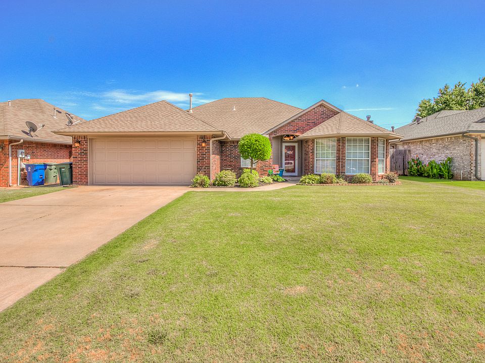 **OPEN HOUSE Saturday (6/18) & Sunday (6/19) 2:00-4:00** Beautiful home with 3 beds 2 baths PLUS an upstairs bonus room! Very spacious kitchen with large front facing windows, pantry, a dining area AND a breakfast bar (perfect for bar stools,) plenty of counter space and storage, and a gas stove. The updated master suite features: dual vanities, a jetted tub, 2 walk in closets, dark wood laminate flooring, tiled shower, and plenty of room for your king sized furniture! Other features include: NEW HVAC in 2012 – New interior and exterior paint in 2015 – upstairs attic access – 3 extra closets for your linens, coats, holiday décor, etc. – 2 inch blinds throughout – new exterior lighting in 2015 – 2 sky lights – upstairs bonus room - home backs to a greenbelt. Don’t miss this one! For questions or a showing call/text Kali 405-613-8388