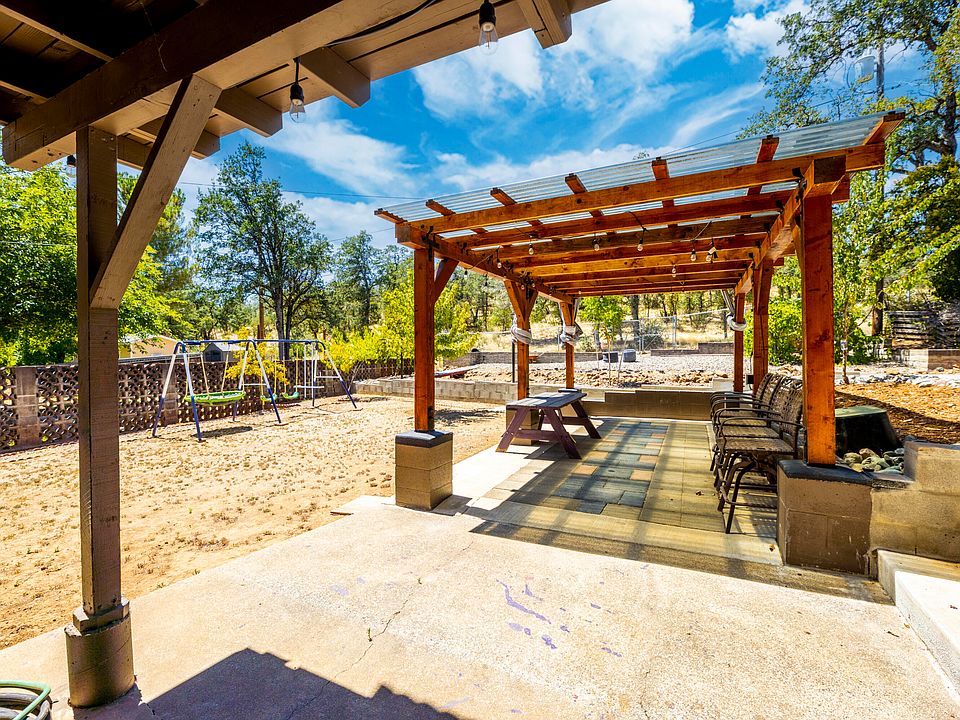 Entertainer's Dream! This charming 3 bed 3 bath home offers a spacious floor plan with beautiful wood flooring and ample room for an in law setup in the walk-out basement! Enjoy shade under the inviting pergola and find an assortment of young fruit trees including peach, nectarine, apricot, orange, grapefruit, lemon, mandarin, AND grapes!