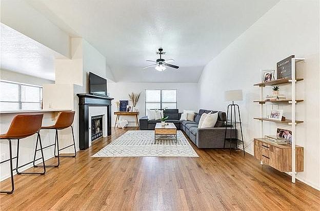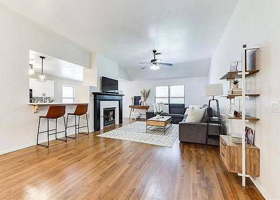 Move-in ready, spacious home centrally located in the safe and well-established Pebble Creek neighborhood in Edmond. As you walk through the door you will notice the spacious living area with high ceilings and stately gas fireplace. You will love the open concept floor plan with wood floors and gorgeous updates throughout. This home has it all with gorgeous quartz countertops and tile backsplash in the kitchen, stainless steel appliances, including a dishwasher, microwave oven, and cooking range. The remodeled eat-in kitchen offers space for barstools and a breakfast area. Formal dining, located just off the kitchen, is the perfect spot for gathering around the table with family and friends. Generous primary suite is the perfect retreat at the end of the day. Relax in the tub or with a hot shower and enjoy the double vanities with gorgeous quartz counters and new, gold mirrors. Spend time on the back patio enjoying your perfectly sized yard with mature landscaping. Neighborhood swimming pool and playground. New paint & light fixtures throughout the house. This is a quiet and safe neighborhood located within walking distance from great restaurants and department stores. The home is located in the highly-rated Edmond Public School District, with the John Ross Elementary School, Cheyenne Middle School, and Edmond North High School all located just 2 miles away. Medical centers (Mercy Clinic and Gentle Dental Clinic), shopping stores (Wal-Mart Supercenter and Kohl's), fitness facilities (Gold's Gym), and popular restaurants (Mio Italian Kitchen and Buffalo Wild Wings), are all within walking distance at less than a mile away. In addition, Edmond's renowned 280-acre Mitch Park is located just a mile away. Please call or email to schedule a showing today! Renter responsible for all utilities. No smoking allowed. Small pets allowed with a non-refundable fee for each pet.