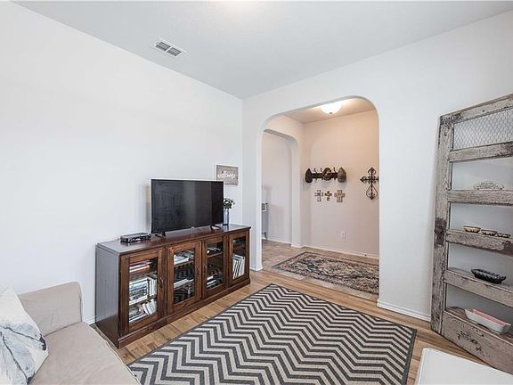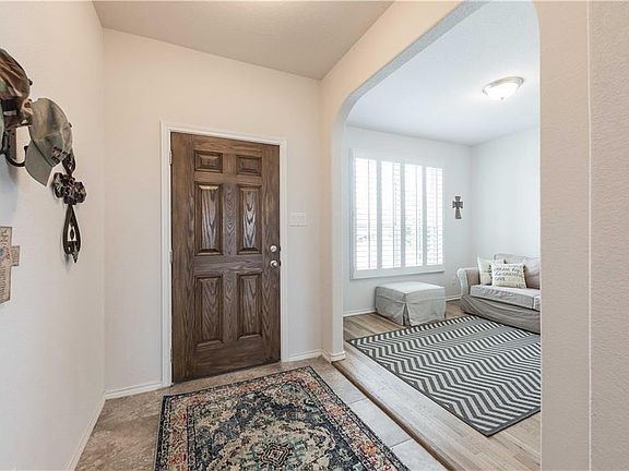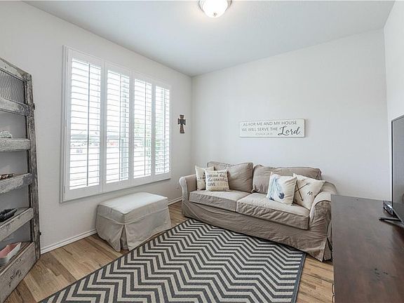 Beautiful house to call your home. Hand scraped wood floors, plantation shutters, corner lot. wonderful breeze on the back patio for sitting out to relax. 3 bedrooms, master is at back of house and other two are in the middle of the house. Very open feel with great kitchen and granite topped island to sit for breakfast.Los Alamos floor plan from D R Horton builder. 18 inch tile in all wet areas. Front room can be a study or den or a second living. 3 pools in subdivision, multiple sports fields, miles of walking trails,plus 200 acres of of parks