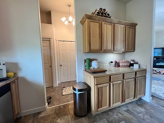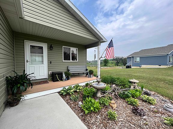 This one-level home offers a stunning and picturesque view that can be appreciated from various parts of the house. As you step inside, you are greeted by a spacious and inviting entryway, complete with a convenient closet to store your belongings. Moving from the entryway, you'll find a well-designed kitchen that boasts an abundance of cabinets, providing ample storage space for all your culinary needs. The kitchen also features generous counter space, allowing you to comfortably prepare meals, and it includes a gas stove, which adds a touch of convenience and efficiency to your cooking experience. Connected to the kitchen is the dining area and living room, both of which are enhanced by large windows that showcase the beautiful view outside. These expansive windows fill the space with natural light, creating a warm and inviting atmosphere for family gatherings and entertaining guests. The primary bedroom is thoughtfully designed, offering a sense of luxury and comfort. It includes a stylish double sink, allowing for convenient and simultaneous use, and it features a separate area for the shower and toilet, providing privacy and functionality. Moving down the hall, you'll find two additional bedrooms that are well-proportioned, providing ample space for rest and relaxation. These bedrooms can comfortably accommodate guests, children, or be used as a home office or hobby room. Adjacent to the bedrooms is a bathroom, a dedicated laundry room, making it easy to take care of your laundry needs without inconveniencing other areas of the house. Outside you will find tons of beautiful perennial's, a patio sit at during the upcoming months, a dog run off back of garage and a shed. Call your favorite realtor today!