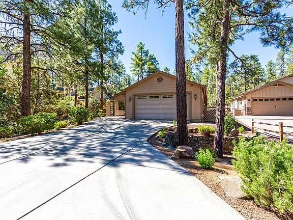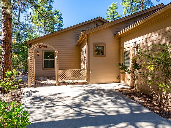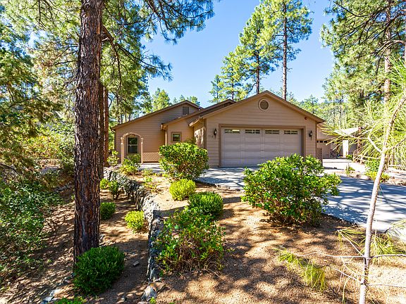 TRUE SINGLE LEVEL LIVING with beautiful upgrades. 1 small step from attached garage into home. Room for everyone with 4 BED Plus OFFICE. Wide Halls, 2 MASTER SUITES! 1st Master has designer Bathtub & Shower. 2nd Master has Wheel Chair Accessible Shower! Other Rooms: Formal Dining Room and Reading Room off the entry. Additional Dining area in Great Room which has a Gas Fireplace & High Ceilings. Open Kitchen has Hickory Cabinets, Granite Counter Tops & designer Tile. Gas Cook top. Gas & Electric Dryer Hookups. Hot Water Re-circulation System, Interior Fire Suppression System. Low Maintenance Landscaping. Garage approx 23'w x 22.5'd Nestled in the Ponderosa Pines and Backed up to wonderful Walking Trails. Plans & Permit to convey.