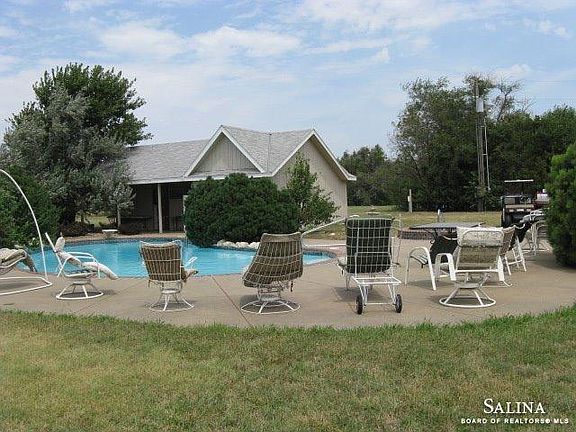 Country Home on 3 acres close to Salina with 5 bedrooms/3 baths, formal Dining Room, eat-in Kitchen, cozy fireplace in family room, 2 finished rooms in basement, Heated McKee pool with Pool house & 2 showers, spa, green house, Large outdoor stage, sprinkler w/rural water.