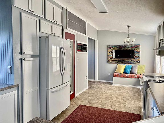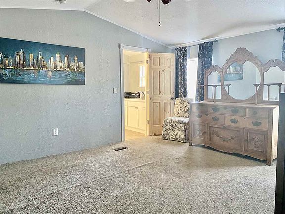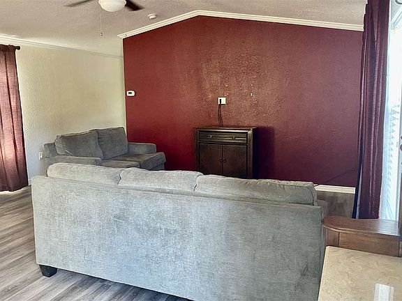 This home has just a little bit of land in the city limits. Large back yard, storage building, mature trees. The home is neat, clean and lots of upgrades inside. Master bedroom is large with garden size tub, shower and nice closet. New flooring, doors, laundry room, two closets in second bedroom, Pantry in kitchen with lots of pull out cabinets and bar. The home sits on a permanent foundation and is move in ready.