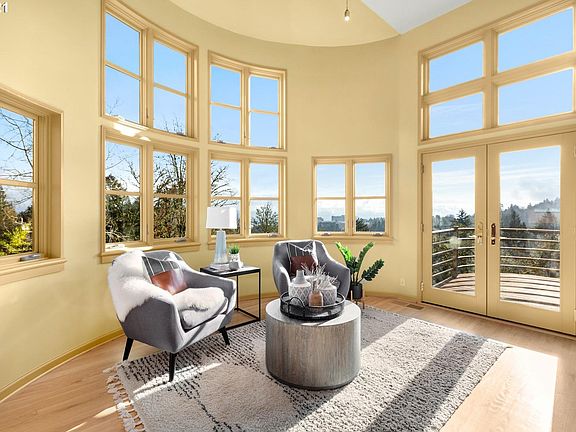 Extraordinary post-modern, custom home, designed by noted architect, to maximize southern light, expansive view of Mt. Hood, Cascade foothills & urban forest. Total privacy. Compact and cohesive for living your best Marie Kondo life. Lower level could be third bedroom, office or both. Open floorplan, high ceilings. intimate nooks and open spaces create architectural masterpiece. [Home Energy Score = 4. HES Report at https://rpt.greenbuildingregistry.com/hes/OR10187904]