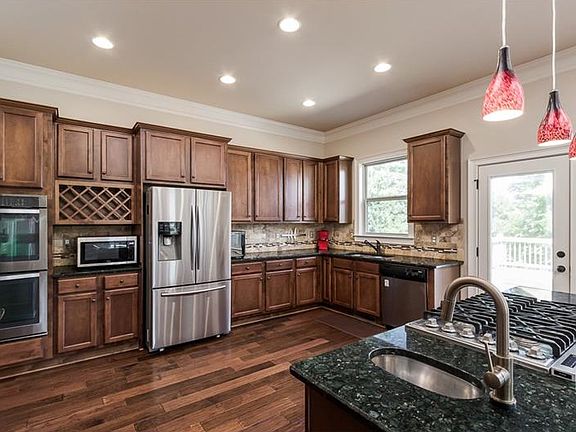 - Kitchen Features: Cabinets Stain, Pantry, Wine Rack, Stone Counters, View to Family Room, Kitchen Island