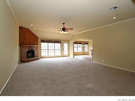 Great floor plan, over 2000 sq. ft. Kitchen has eating bar and is open to vaulted great room with corner FP. Nice dining area. Split plan, large, vaulted master bedroom. Master bath has double vanity, Jacuzzi tub, separate shower. Jenks schools