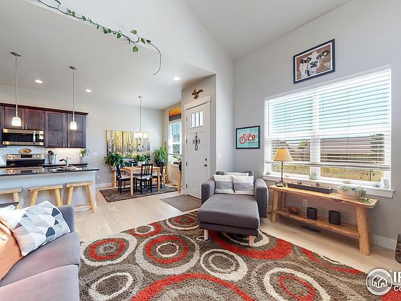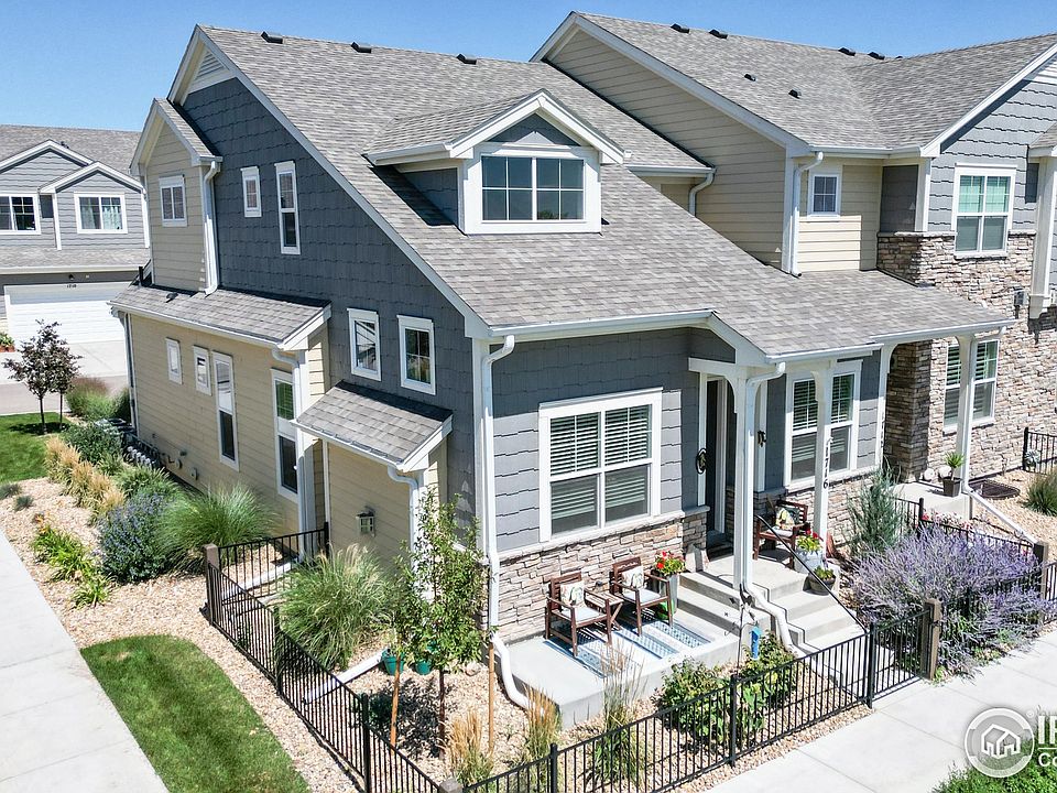 PRICE REDUCED! Experience zero maintenance living in this immaculate Landmark townhome built in 2020. This gem situated in northwest Loveland has top of the line finishes throughout. Enjoy cooking in your gourmet kitchen featuring a large island, beautiful quartz countertops and dark maple cabinets, and premier appliances. The bright and open living room has vaulted ceilings, large south facing windows, hardwood flooring, and a gas fireplace. The main level is complete with a 1/2 bath, laundry, and the primary bedroom highlighted by a luxury bathroom and walk in closet. Upstairs has a loft with an office, plus 2 large bedrooms and a full bathroom. Relax on your south facing patio as you enjoy the Louden trail at your doorsteps with mountain views. In addition to standard exterior maintenance, HOA also covers sewer, trash, TV and internet.