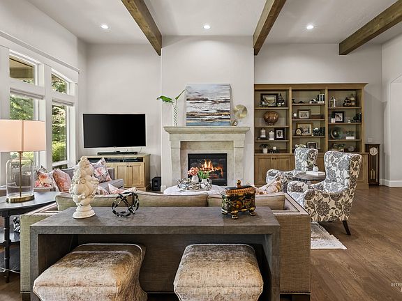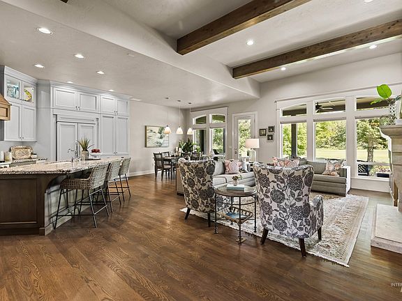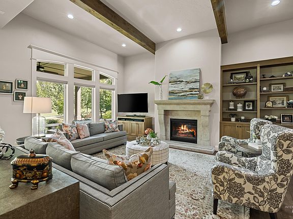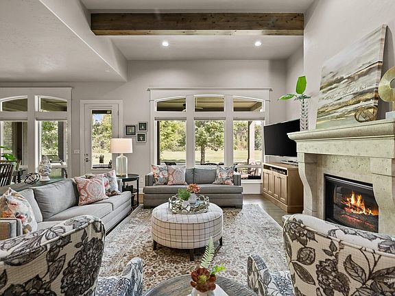 Elegant single story Executive home in Banbury Meadows overlooking the 13th fairway! High end finishes throughout. First time on the market. Enjoy this chef's kitchen w/custom cabinets, pull out shelves, granite, viking appliances opening to the great room with large stone fireplace, built-ins and walls of windows. High ceilings, hardwood floors, 3 bedrooms with split floorplan and large paneled office w/separate exterior entrance. Great for someone working from home. Two guest rooms with their own sinks and jack/jill bathroom. The main suite offers windows overlooking golf course, free standing soaker tub, heated floors, extra deep granite slab counters, and an AMAZING closet that wraps around for his/her sections. Inlaid white tile ties it all together. Tons of storage in this home. Oversized garage w/room for golf cart. Enjoy the north facing patio for outdoor summer evenings.