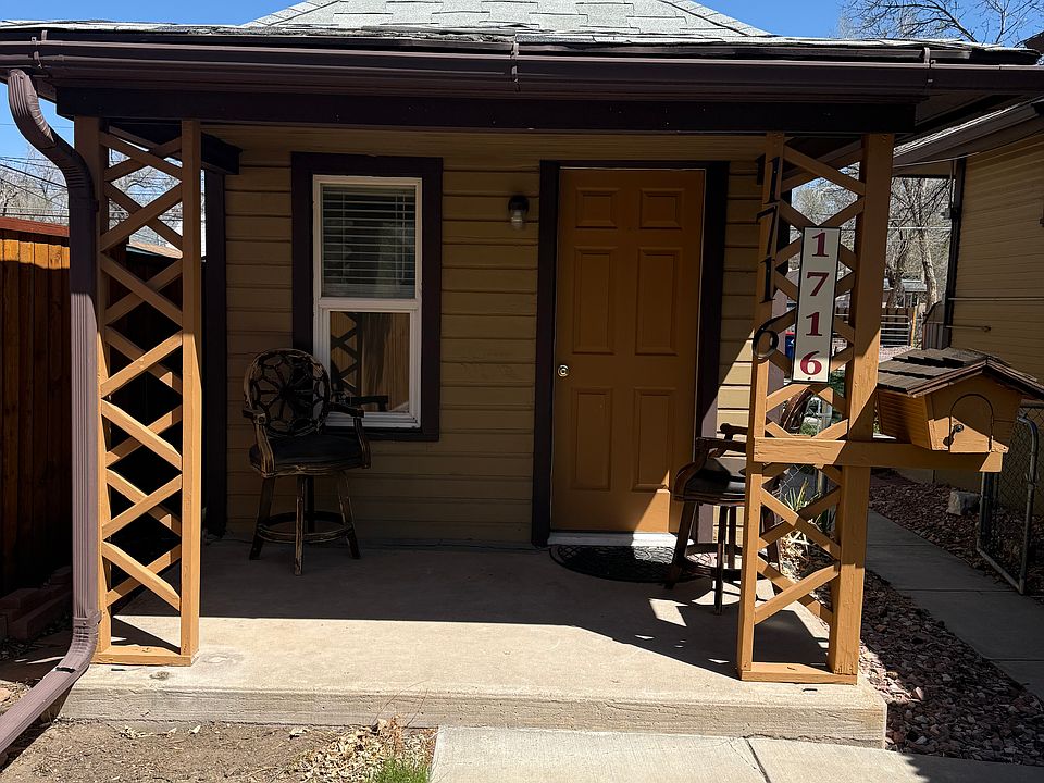 Newer appliances, stackable laundry hookup, air conditioner, water and sewer included. Carport space. Clean, quiet and cozy. Charming. Located in Old Colorado City. Close to Pikes Peak and Garden of the Gods. 100 feet to bus stop. 1 person only. No pets.