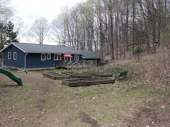 Rustic family-ready ranch on just under 1.5 acres with updated kitchen and main bath, hardwoods, natural woodwork, a deck overlooking a wooded private lot and extra large two car attached garage. Well pump is just a few months old. Don't miss this gem in desirable Memphis NY. Square footage is per bank appraiser.