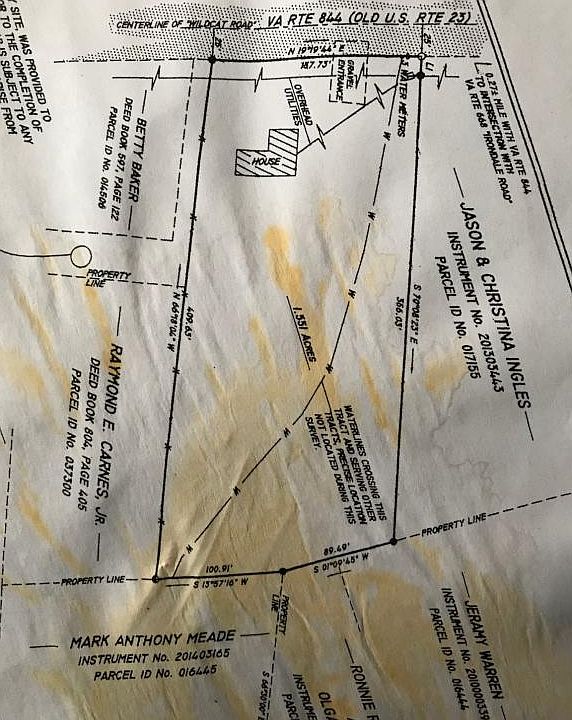 1.551 surveyed acres fronting on Wildcat Rd. House site with public water and private septic. Also includes second site with mobile home hookup and second driveway. Survey in office.