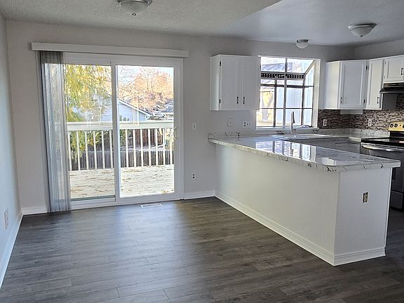 The home has been completely remodeled with a brand-new furnace and A/C, fresh paint on all walls and ceilings, upgraded lighting, and rich engineered flooring throughout with no carpet anywhere. The kitchen includes an oversized newly tiled counter along with a new refrigerator and dishwasher. A new energy-efficient balcony door adds to the home's modern feel and comfort.
